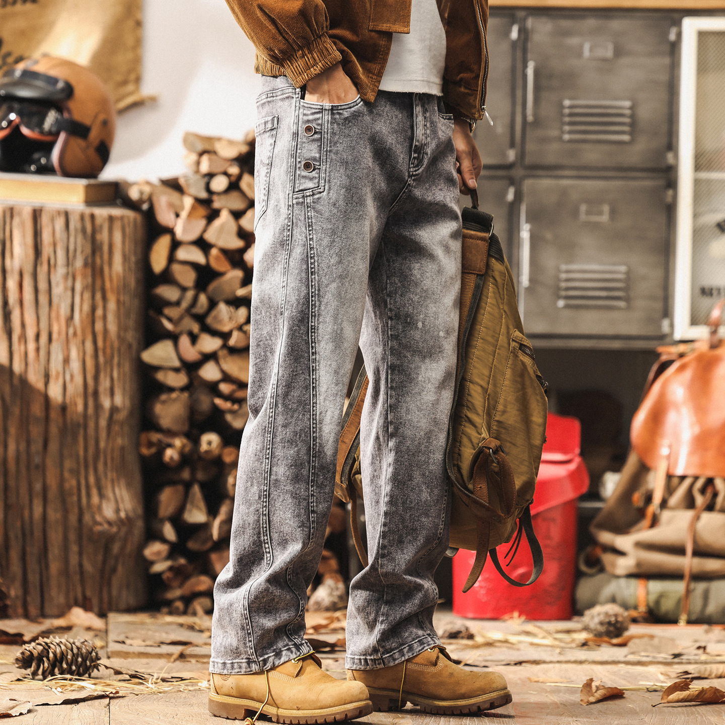 美式復古菸灰色牛仔褲男直筒2025新款工裝褲子男秋季潮牌休閒長褲