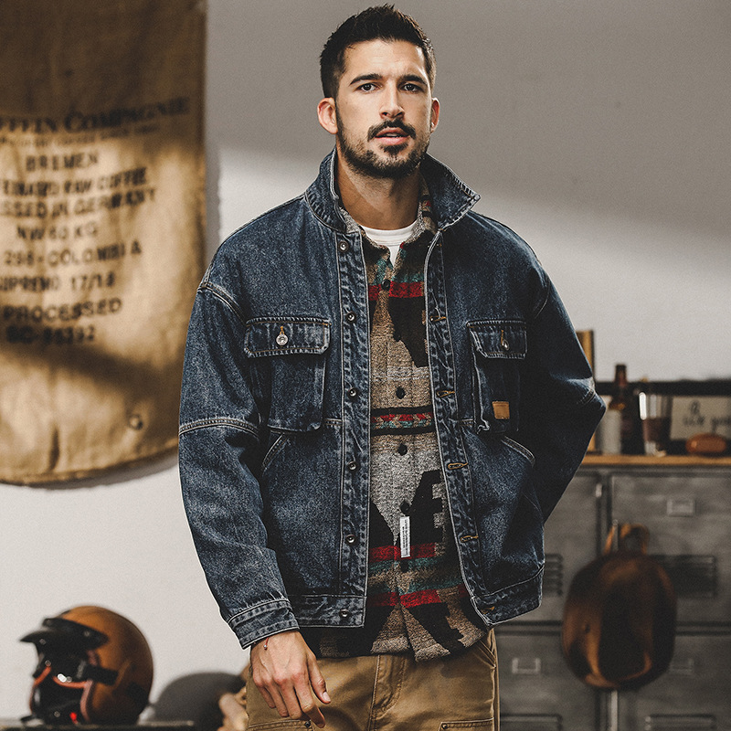 美式經典復古牛仔外套男秋冬款水洗做舊寬鬆潮流休閒男士工裝夾克