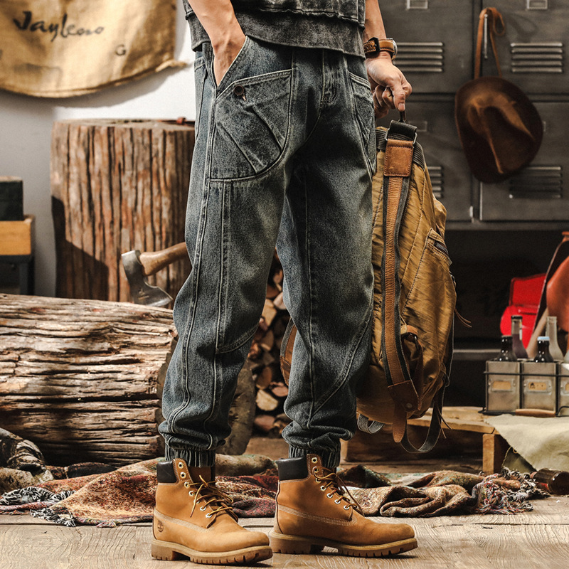 杰雷諾美式復古牛仔褲男秋季2024新款潮牌束腳做舊水洗男士休閒褲