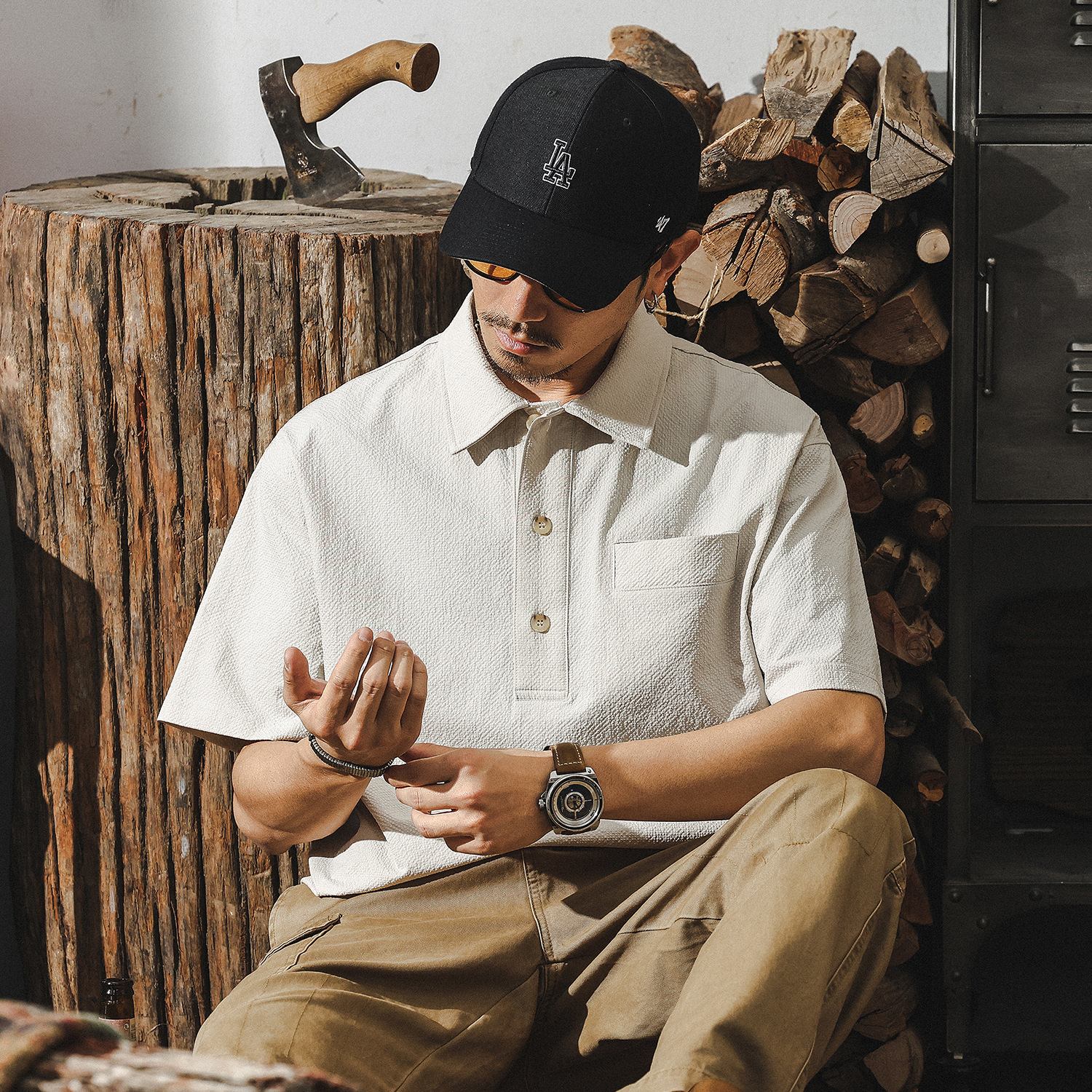 美拉德復古涼感速幹短袖男士Polo衫夏季潮牌高級感泡泡紗寬鬆上衣