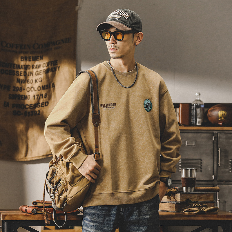 美式復古簡約重磅衛衣男潮牌春秋款2024新款寬鬆男士上衣長袖T恤