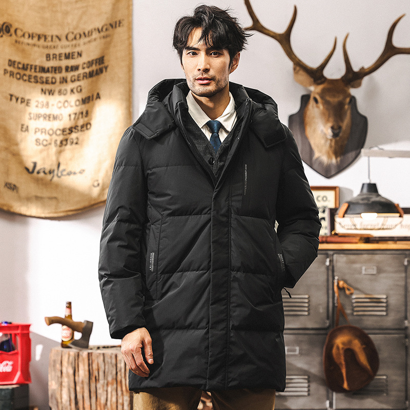 國標90%鴨絨冬季羽絨服男中長款連帽潮牌加厚保暖禦寒大衣外套男