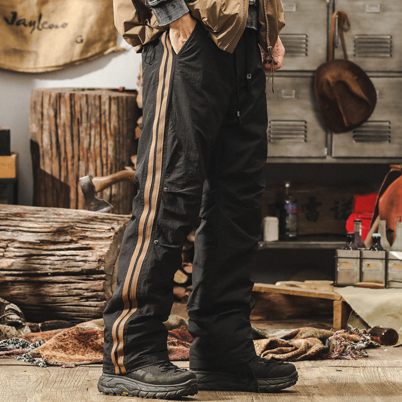美式復古潮牌彈力工裝褲子男秋季寬鬆直筒戶外山系通勤男士休閒褲