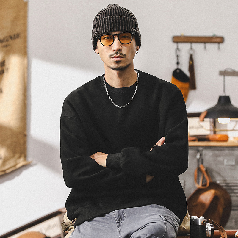 美式復古字母提花380g重磅衛衣男秋冬款潮流廓形圓領寬鬆大碼上衣