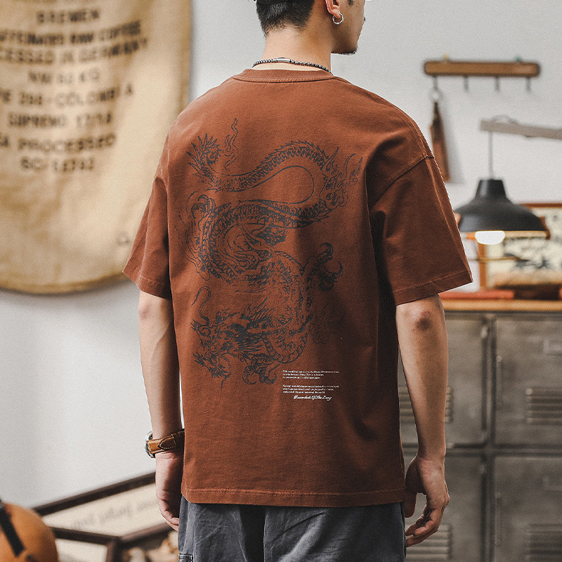中國民族風重磅寬鬆男士T恤短袖男款夏季大碼男裝半袖體恤男