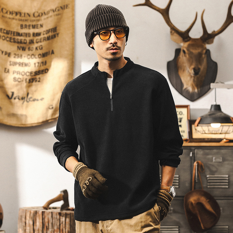 美式復古歐棉絨400g重磅衛衣男春秋長袖T恤男秋季半拉鍊寬鬆上衣