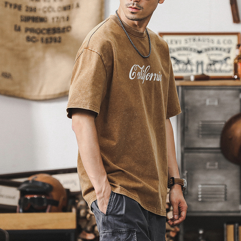 杰雷諾復古雪花水洗短袖T恤男夏季美式重磅硬挺體恤寬鬆上衣潮T男