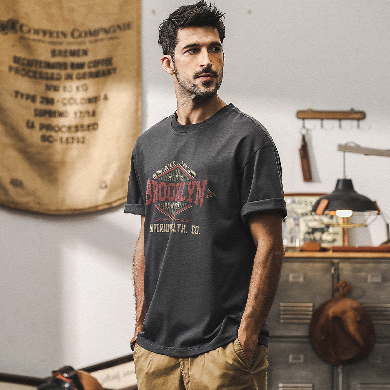 美拉德復古髒染水洗美式短袖男款夏季300g重磅T恤男寬鬆男士上衣T