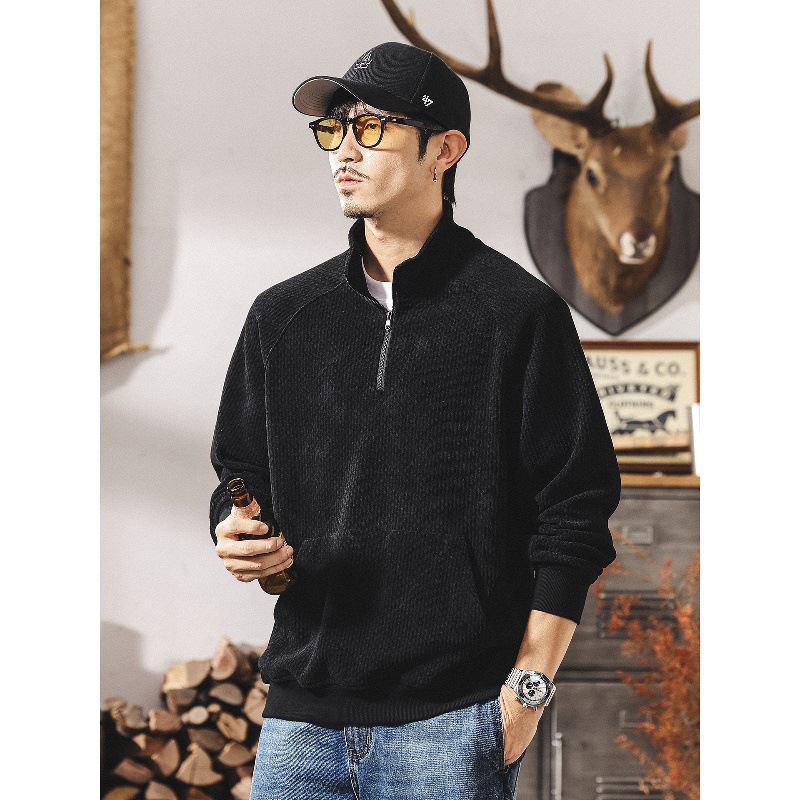 美式復古半拉鍊重磅衛衣男春秋2025新款寬鬆大碼休閒立領潮牌上衣