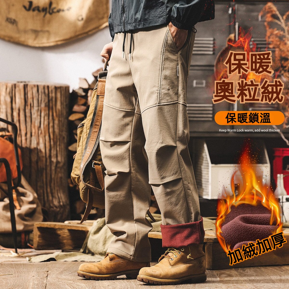 美式復古加絨工裝褲子男直筒冬季潮牌加厚機能傘兵褲寬鬆休閒長褲