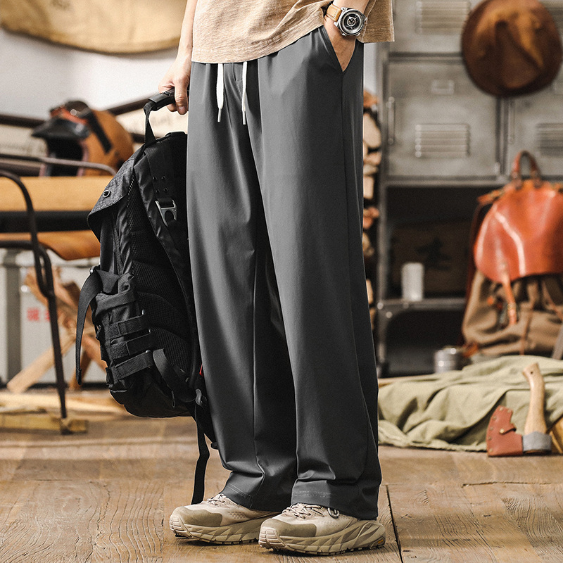 冰絲涼感男士休閒褲2024新款夏季薄款速乾褲潮流垂感寬鬆直筒男褲