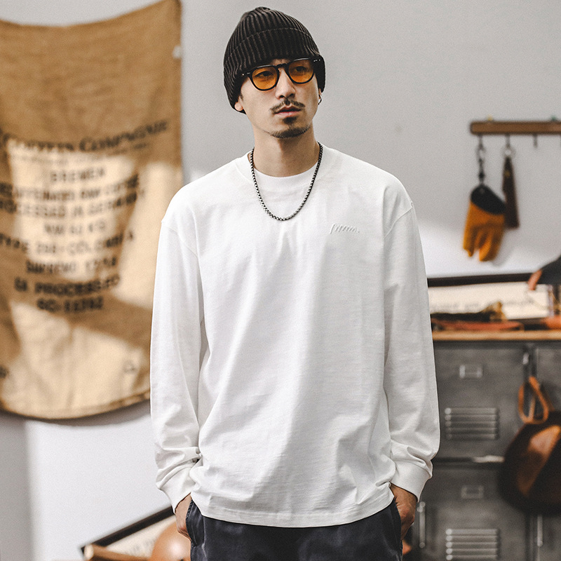 美式重磅長袖T恤男2024新款潮牌寬松白色上衣體恤男T春秋款打底衫