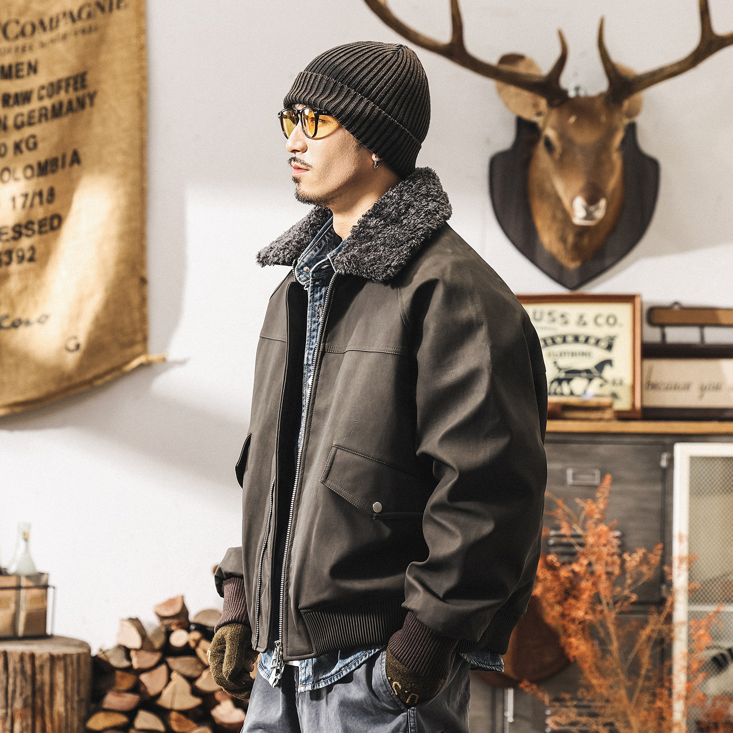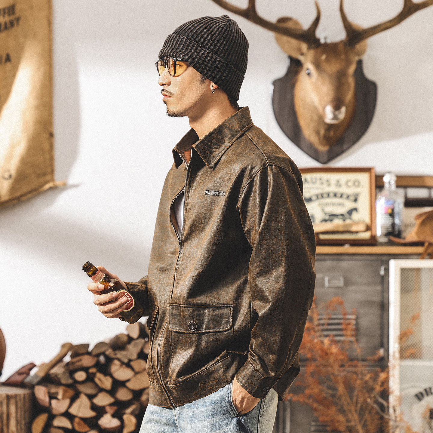 美式復古油蠟皮夾克男春季新款休閒寬鬆潮流古着帥氣大碼機車外套