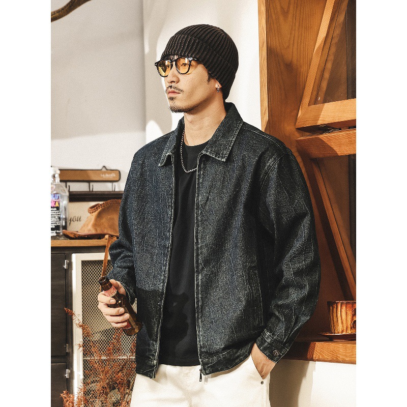 美式復古扎染水洗牛仔外套男秋季2025新款潮流痞帥休閒寬鬆夾克男
