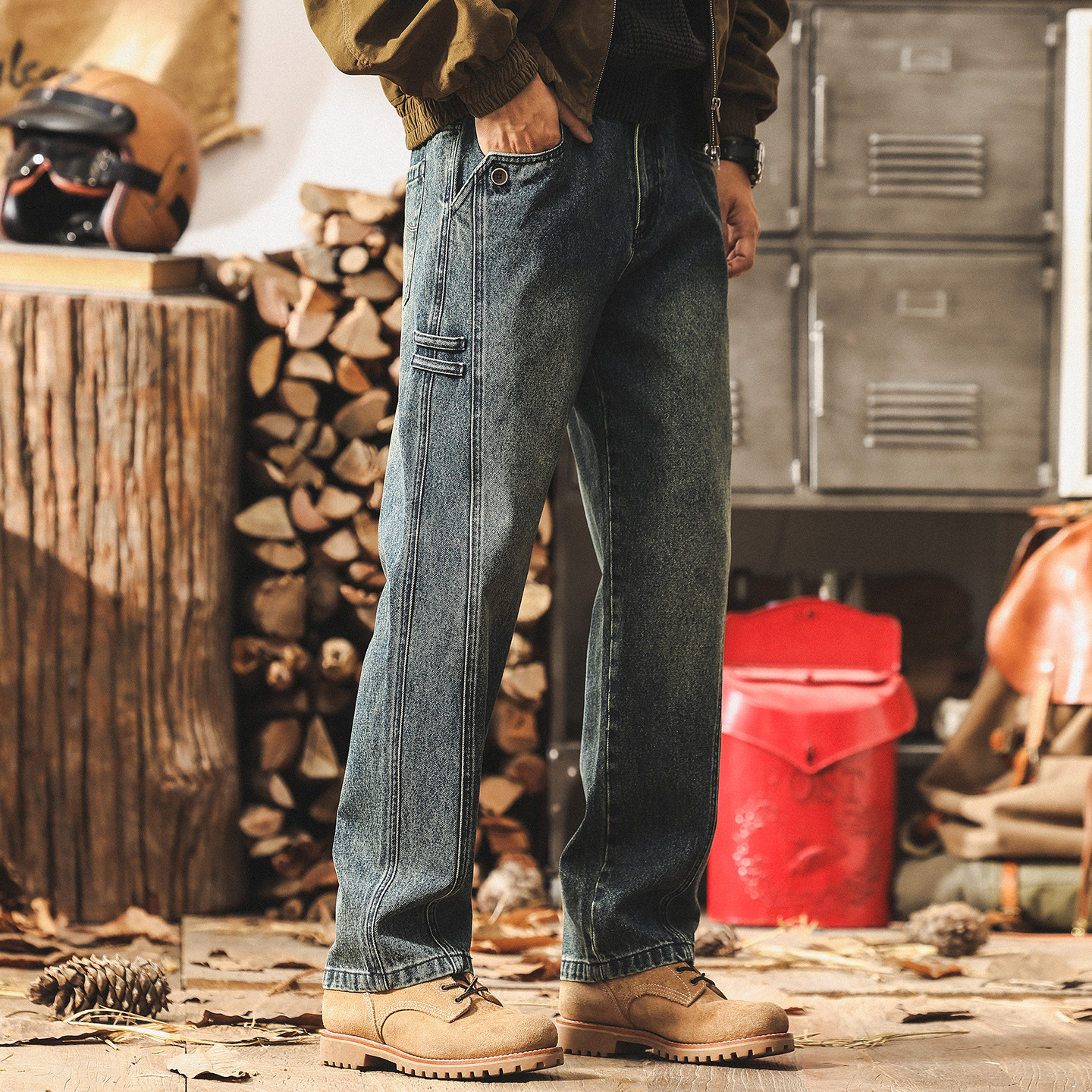 美式復古水洗牛仔褲男秋季2025潮牌新款直筒工裝褲子男寬鬆休閒褲