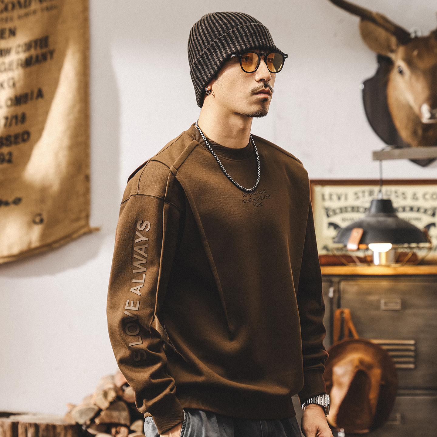 美式復古廓形重磅衛衣男春秋新款潮牌設計感結構寬鬆大碼男士上衣