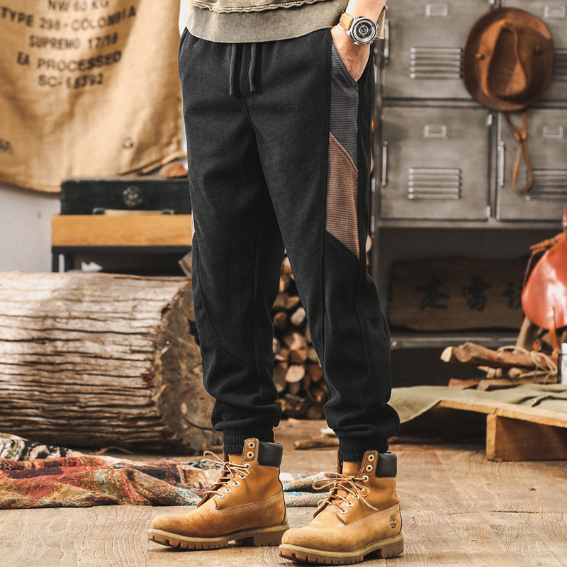 美式復古潮流設計感休閒褲男寬鬆2025新款針織拼接秋季男士褲子潮