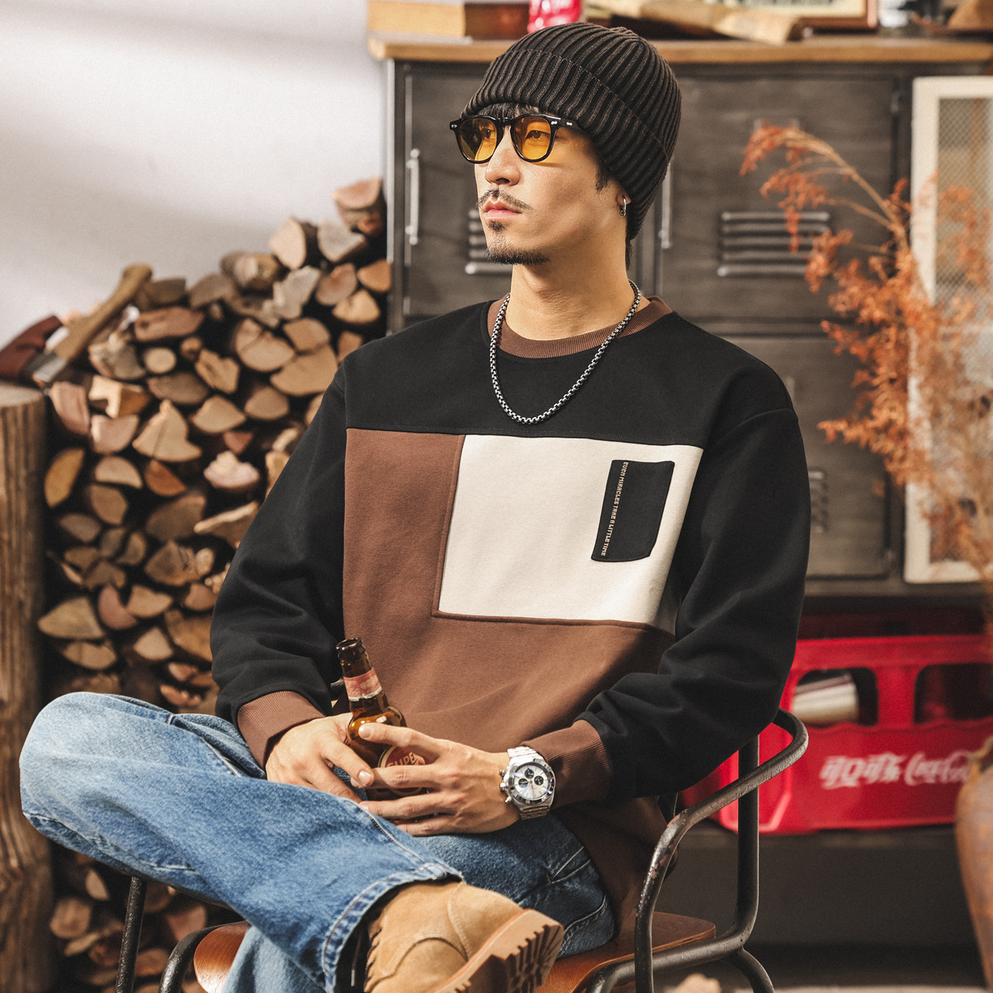美式復古390g重磅衛衣男春秋款寬鬆大碼潮牌拼接休閒男生秋季上衣