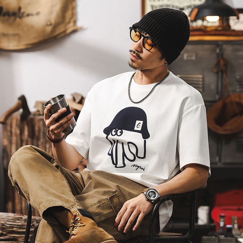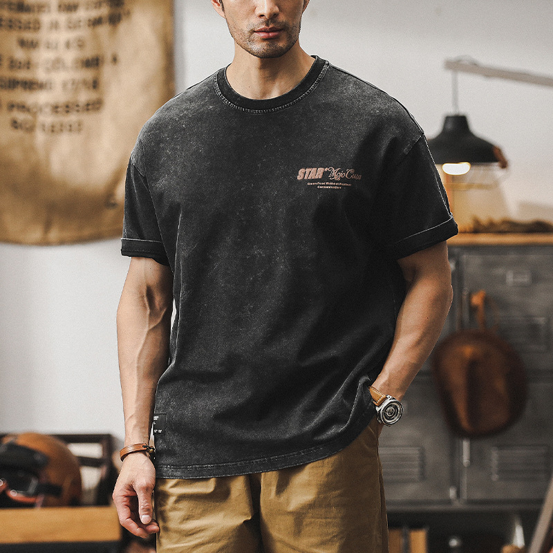 立體絨面印花40支涼感T恤男2025新款美式復古短袖男夏季寬鬆上衣