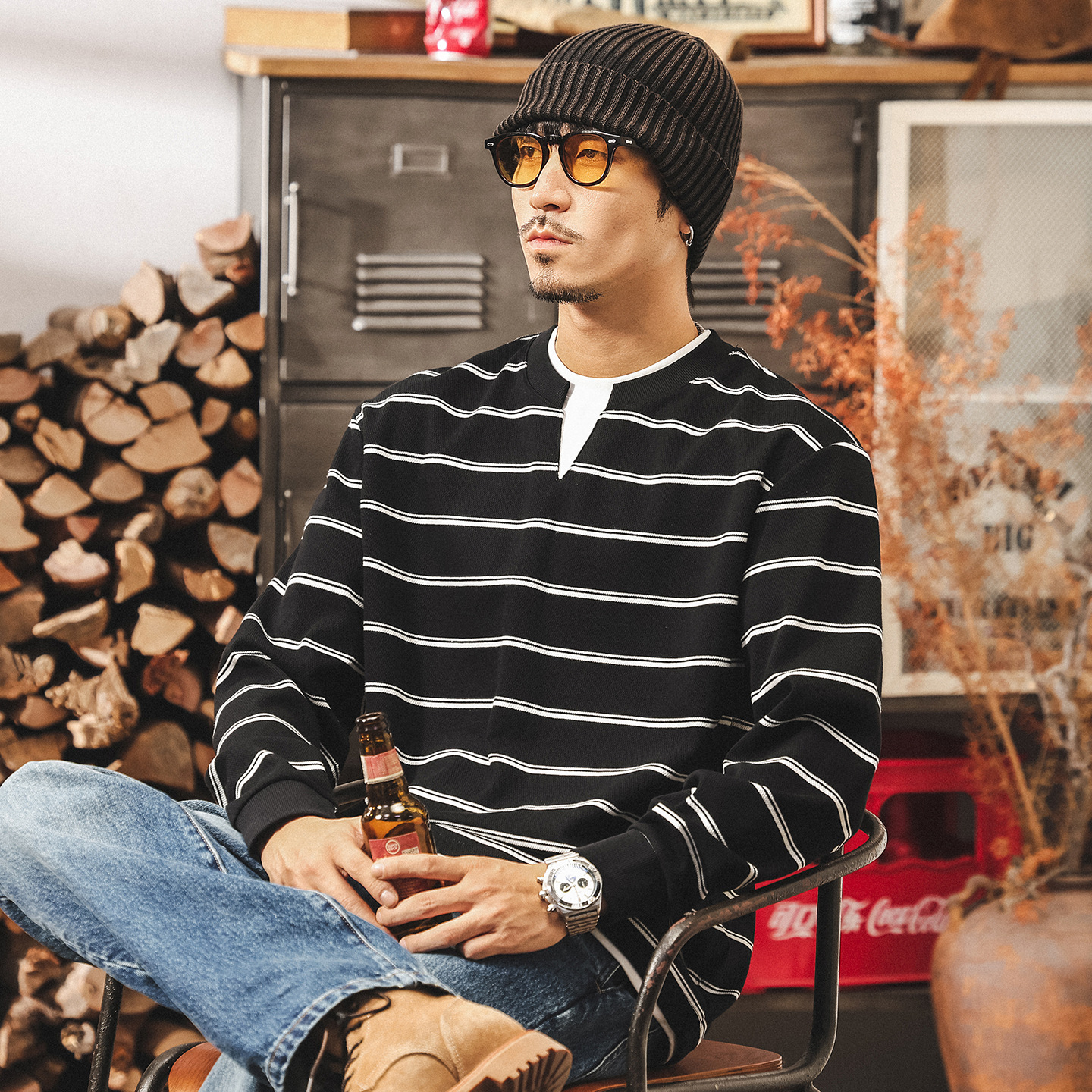 美式復古重磅條紋假兩件衛衣男秋季2025新款潮牌寬鬆休閒長袖上衣
