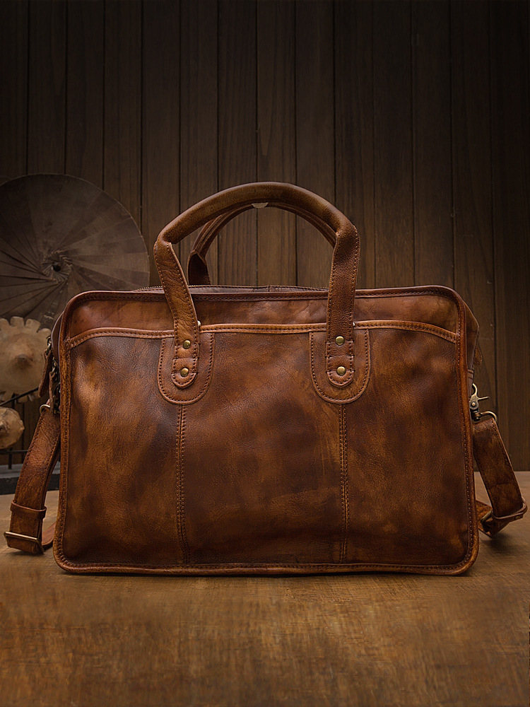 手工男士復古公文包手提男包頭層牛皮旅行包男款單肩斜挎包電腦包