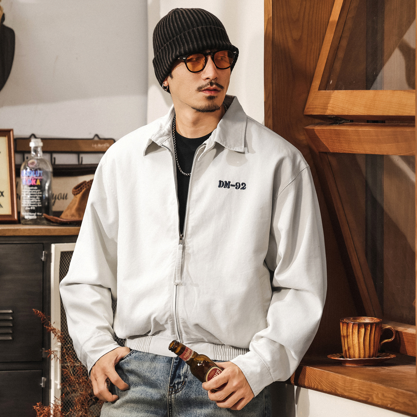 美式復古霜感巴恩風外套男春秋2025新款潮牌工裝寬鬆行政教練夾克