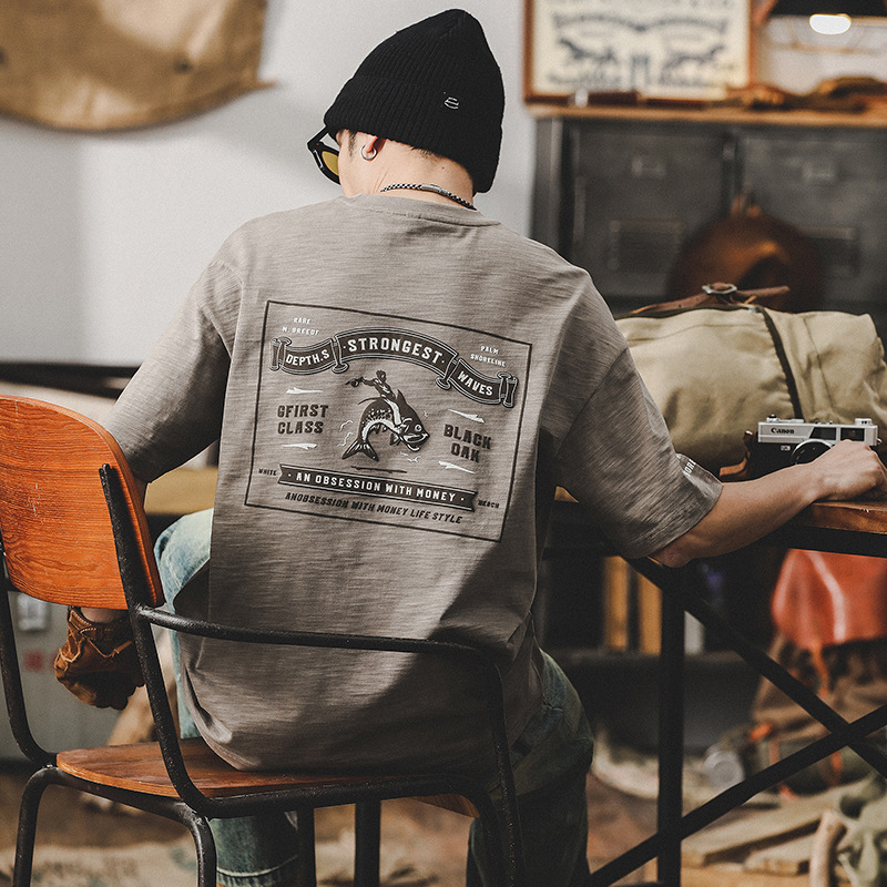 美式復古300g重磅T恤男夏季短袖2025新款潮流印花休閒上衣男