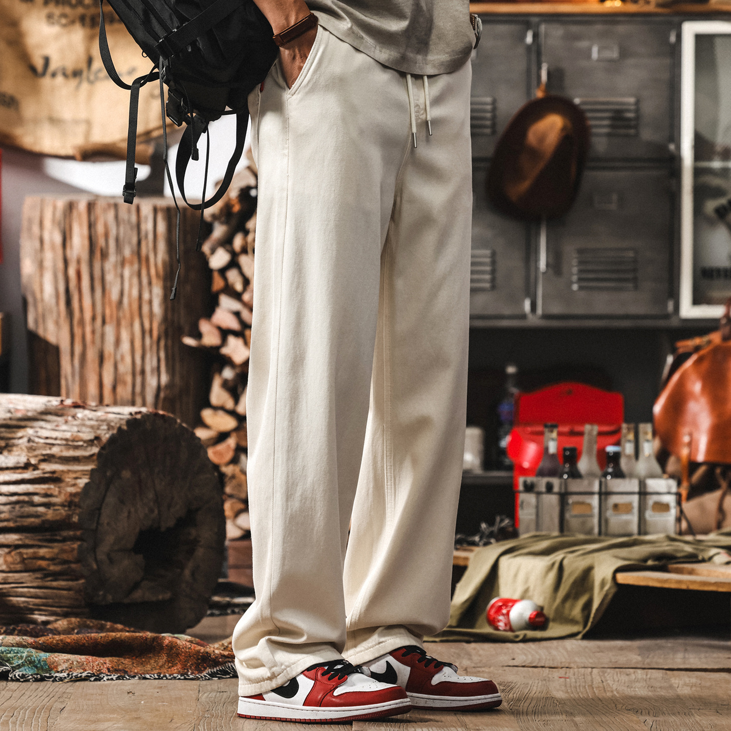 美式復古薄款褲子男夏季寬鬆垂感慵懶風闊腿褲男潮牌直筒休閒長褲