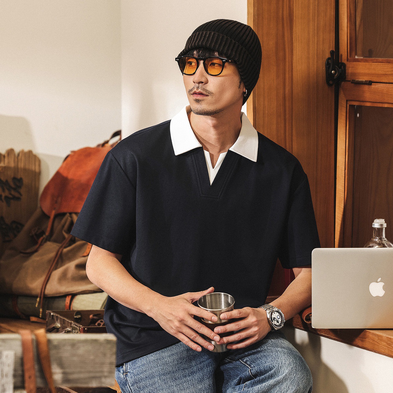 萊賽爾天絲高級感短袖男夏季美式復古駝色潮牌男士T恤美拉德上衣