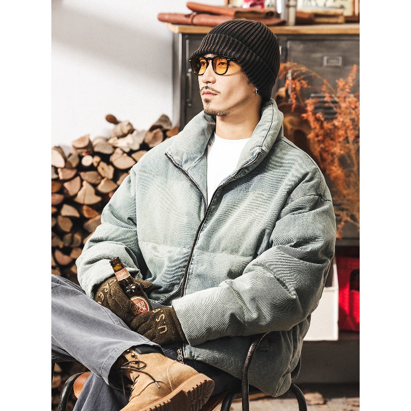 高充絨蓬鬆白鴨絨男士羽絨服冬季新款潮牌加厚保暖麪包服牛仔外套