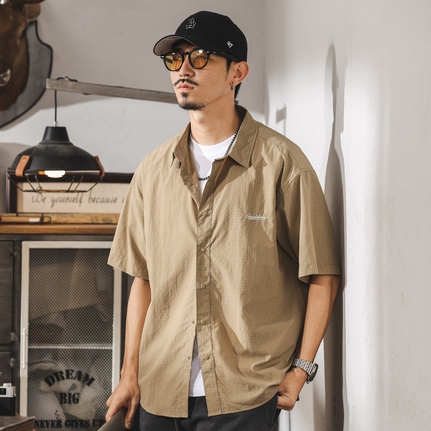 輕量化戶外通勤格紋襯衫男短袖夏季新款簡約休閒寬鬆襯衣薄款外套