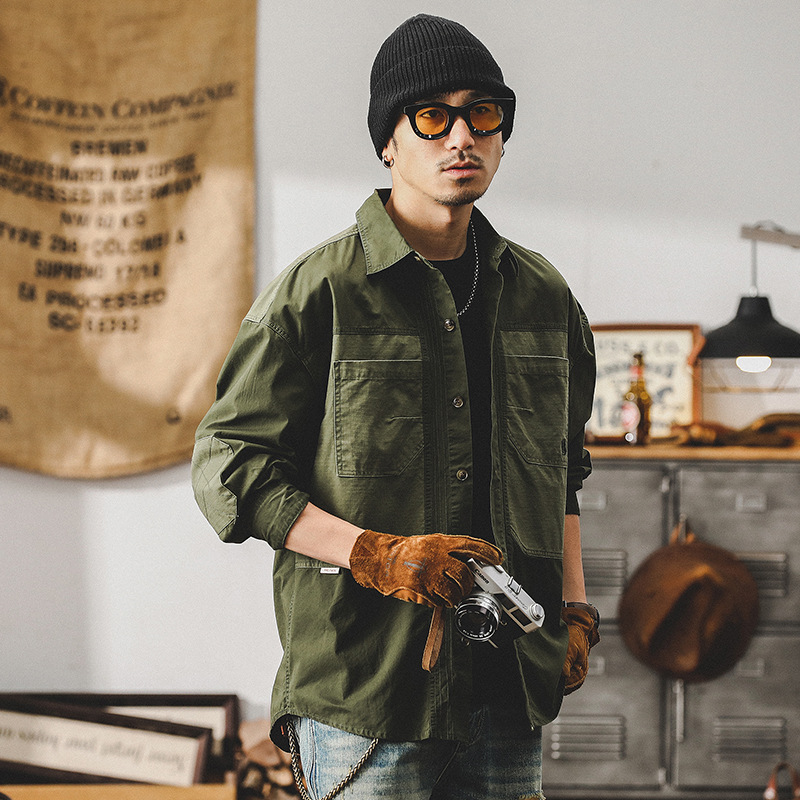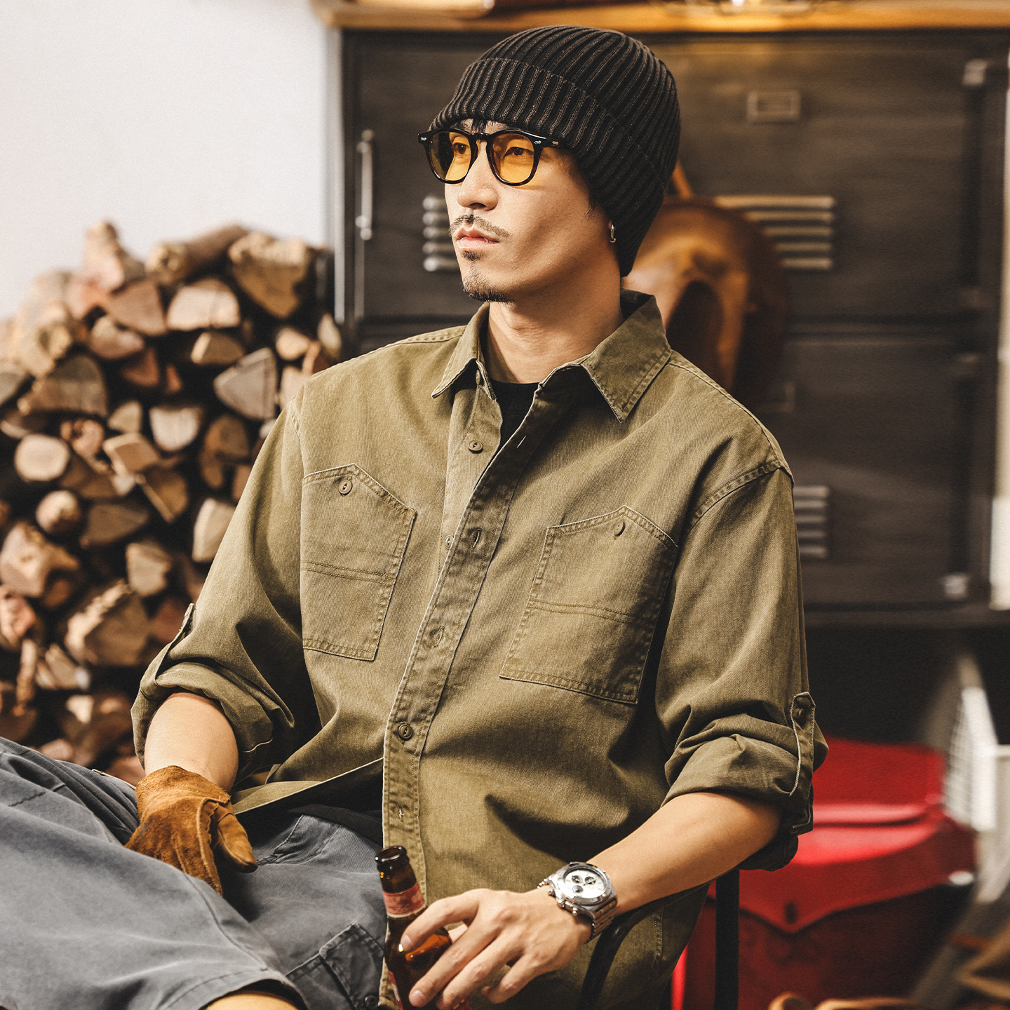 16支磨毛工裝襯衫男春季2025新款美式復古戶外阿美咔嘰襯衣男