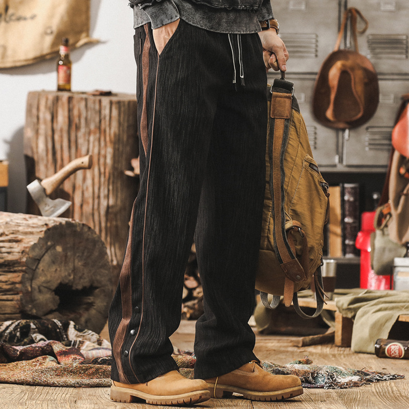 美式覆古高級感燈芯絨休閒褲男2024秋冬款重磅衛褲寬鬆垂感直筒褲