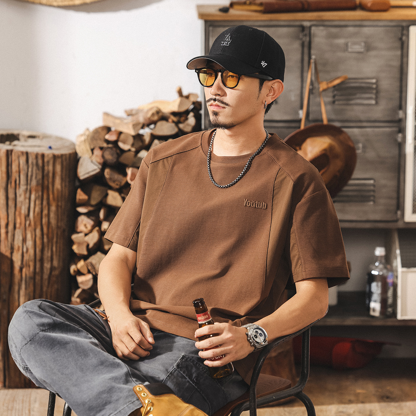 美式復古260g重磅短袖T恤男夏季2025新款華夫格肌理感休閒上衣男T