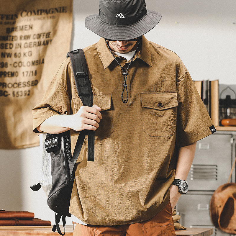 杰雷諾美式復古套頭工裝襯衫男短袖夏季2024年新款半袖衣服POLO衫