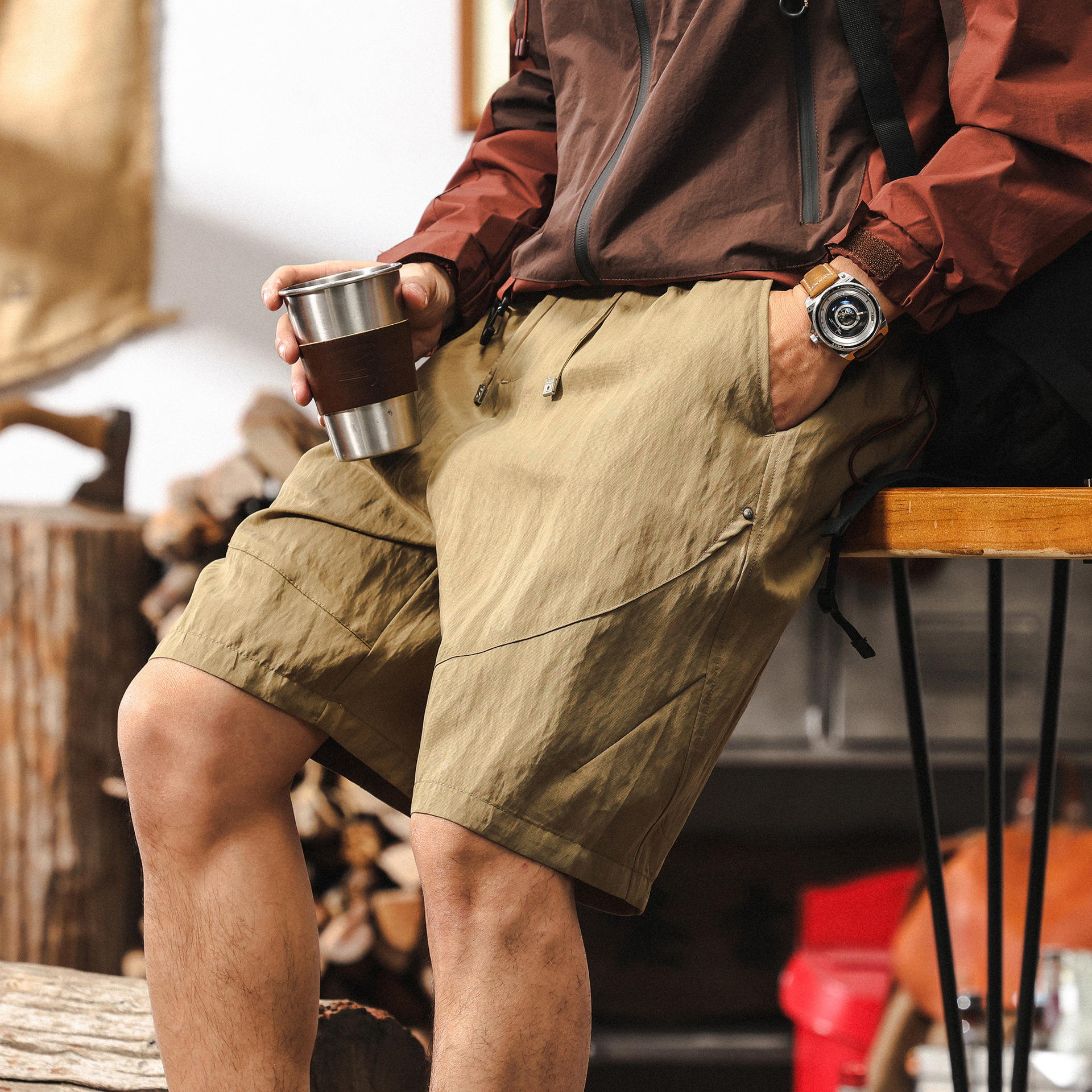 美式復古冰絲薄款短褲男夏季新款拼接潮牌中褲速乾戶外工裝五分褲