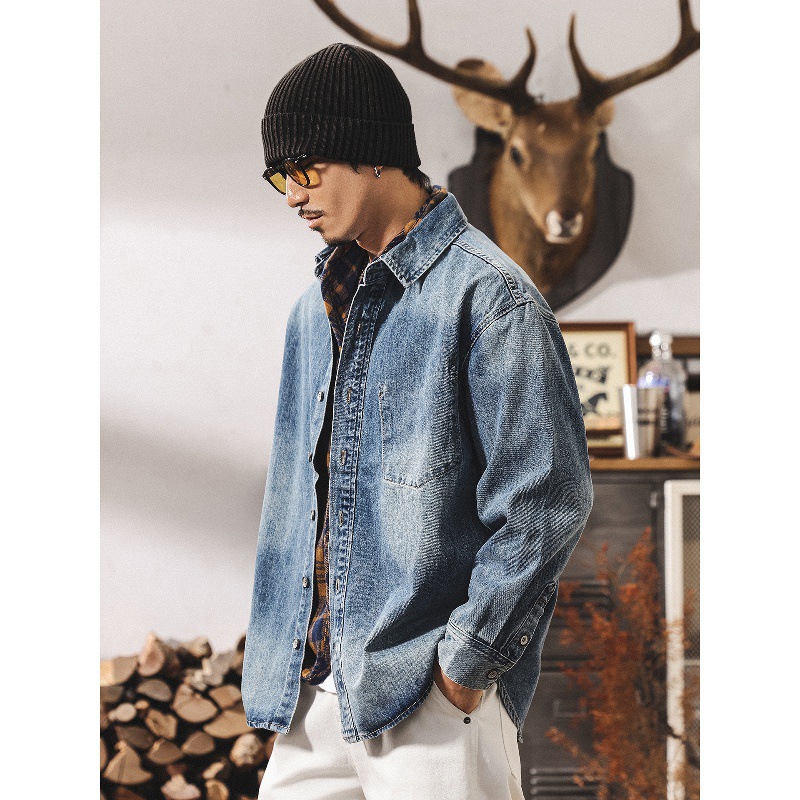 美式復古石磨水洗牛仔外套男春秋款寬鬆潮牌長袖襯衫男士秋季夾克