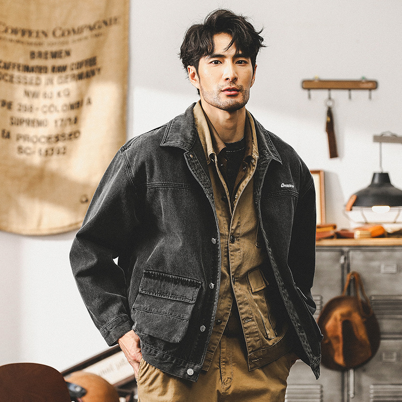 春季新款男士休閒夾克2024新款潮牌高級感手工擦色工裝牛仔外套男