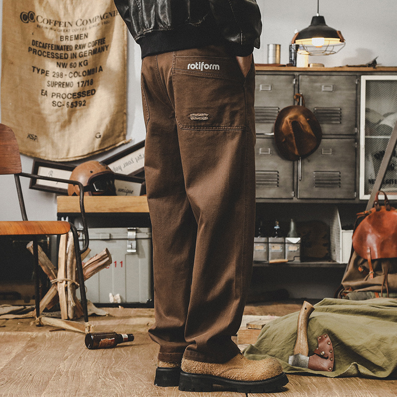 美式複古重磅工裝褲子男2024年新款男士休閑褲春秋季簡約錐形長褲