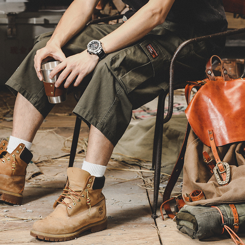 美式複古工裝短褲男夏季薄款休閑七分褲男寬松直筒男士短褲潮
