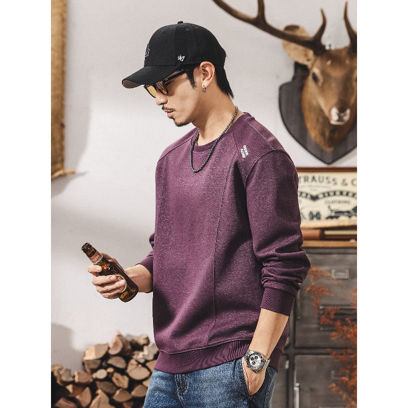 美式復古紫色衛衣男春秋2025新款拼接潮流長袖t恤男寬鬆秋季上衣