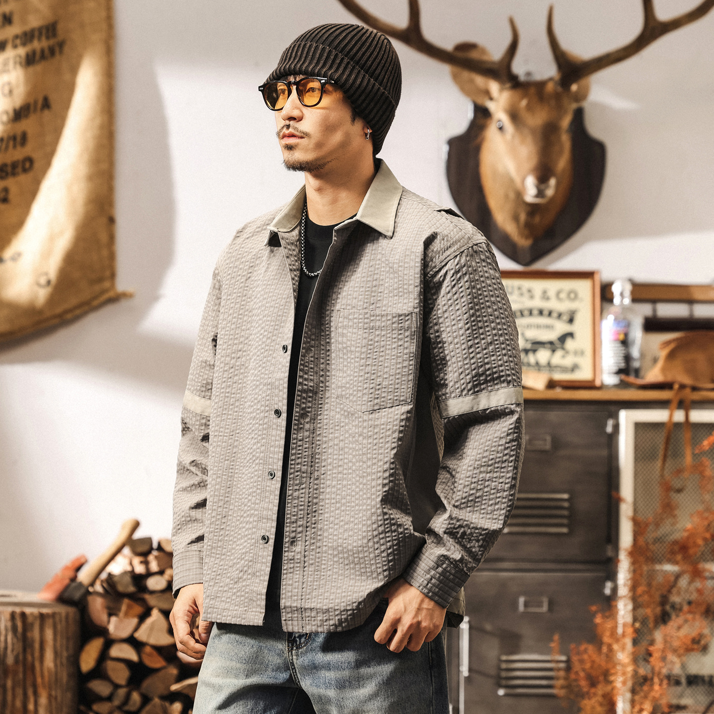 硬漢獵裝工裝襯衫男長袖美式重磅復古城市戶外通勤休閒襯衣外套男