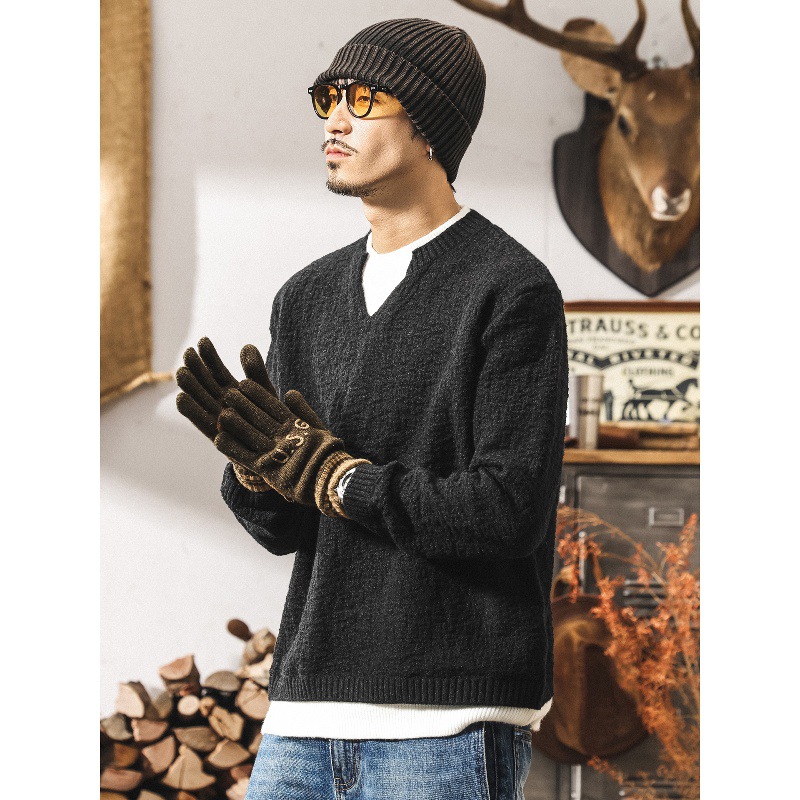 美式重磅復古毛衣男秋冬款加厚口袋設計款潮牌寬鬆大碼男士針織衫