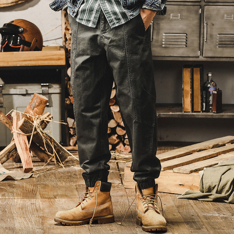 美式重磅復古工裝褲子男春季潮牌寬鬆直筒休閒褲男束腳獵裝戰術褲