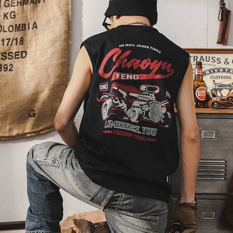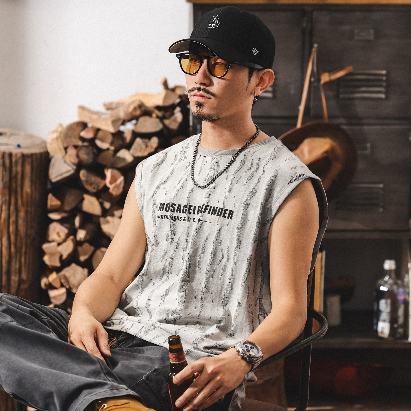 美式復古水洗做舊運動健身背心坎肩籃球訓練夏季寬鬆男士T恤