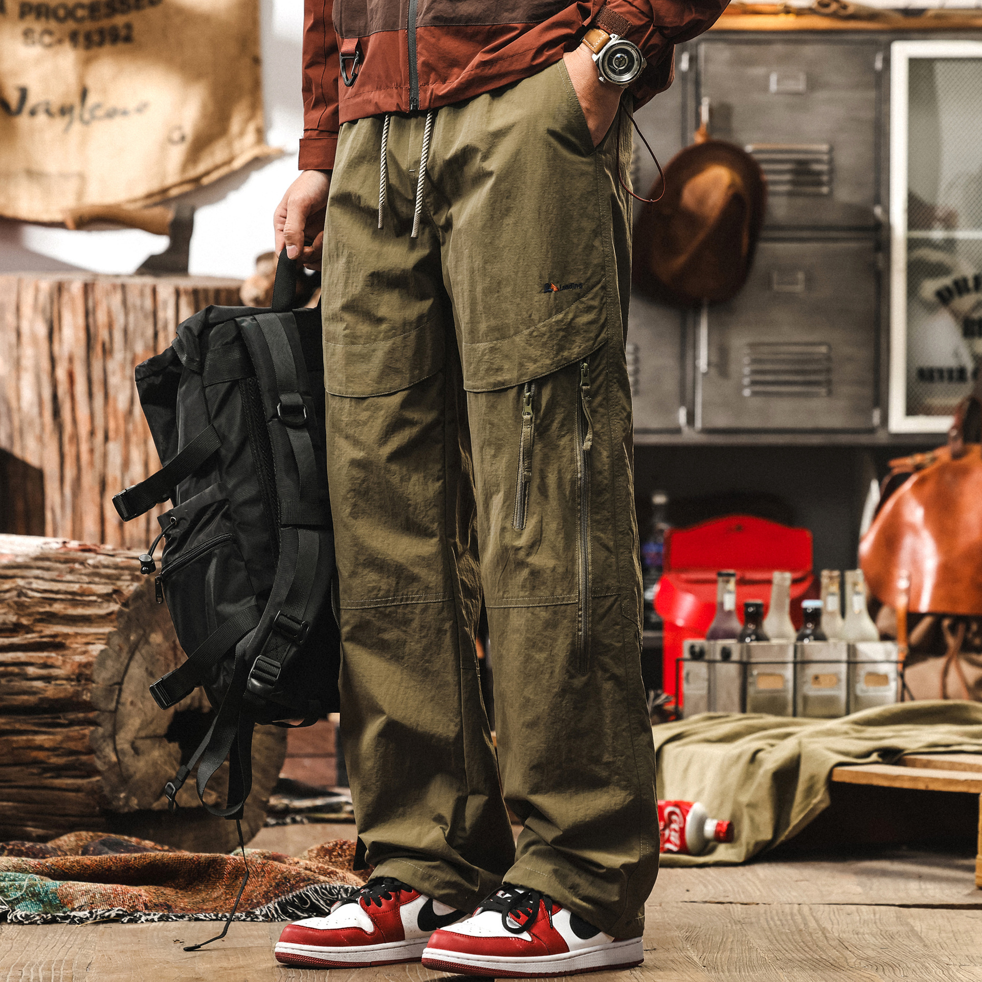 戶外輕量化冰絲涼感速幹工裝褲子男夏季潮牌機能通勤寬鬆休閒長褲
