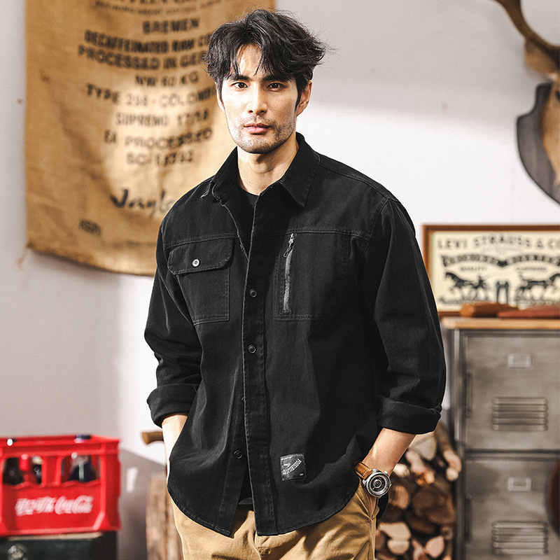 美式復古重磅粗斜工裝襯衫外套男秋季2024新款潮牌獵裝通勤襯衣男