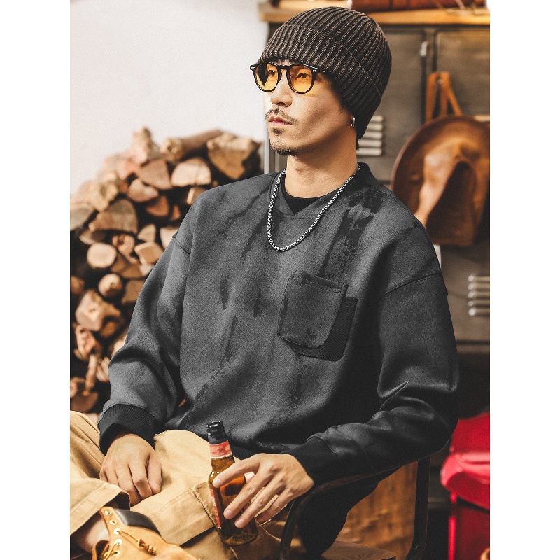 美式復古長袖t恤男秋季潮牌男士上衣寬鬆大碼300g重磅衛衣男春秋