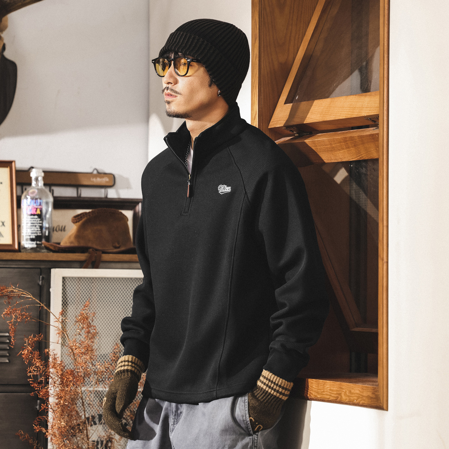 美式復古潮流半拉鏈立領衛衣男春秋2025新款寬鬆刺繡秋季男士上衣