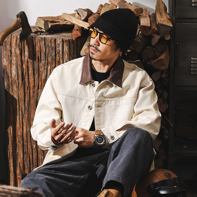 環保原胚棉巴恩風工裝外套男春秋2025新款潮流美式復古春季夾克男